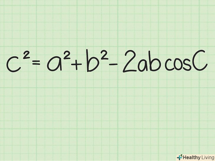 Вивчіть теорему косинусів.ця теорема дозволяє обчислити невідому сторону трикутника, якщо дані довжини двох інших сторін і величина кута між ними. Теорема косинусів дуже корисна, вона справедлива для всіх трикутників. Ця теорема говорить, що для будь – якого трикутника зі сторонами A, B і C і протилежними їм кутами A, B і C справедлива наступна формула: C2 = a2 + b2 - 2AB cos(C).[3][4]