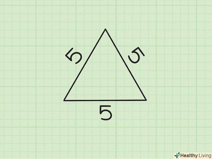 Подивіться на трикутник і дізнайтеся довжини всіх трьох сторін.припустимо, трикутник має наступні сторони: A = 5, B = 5 і C = 5.- Розглянутий трикутник називається рівностороннім, так як всі три його сторони мають однакову довжину. Проте формула для розрахунку периметра справедлива для будь-якого трикутника.