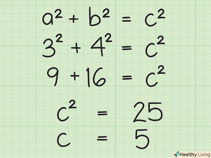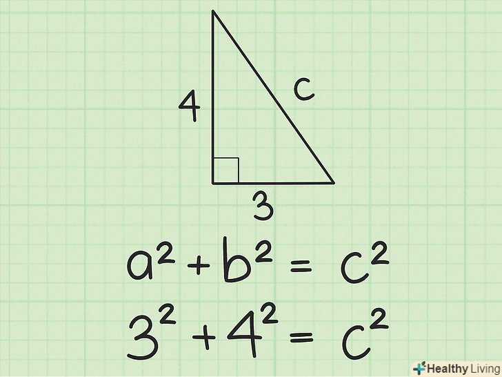Згадайте теорему Піфагора. ця теорема говорить, що в будь-якому прямокутному трикутнику з катетами A і B і гіпотенузою C сторони пов'язані наступним співвідношенням: A2 + b2 = c2.[2]