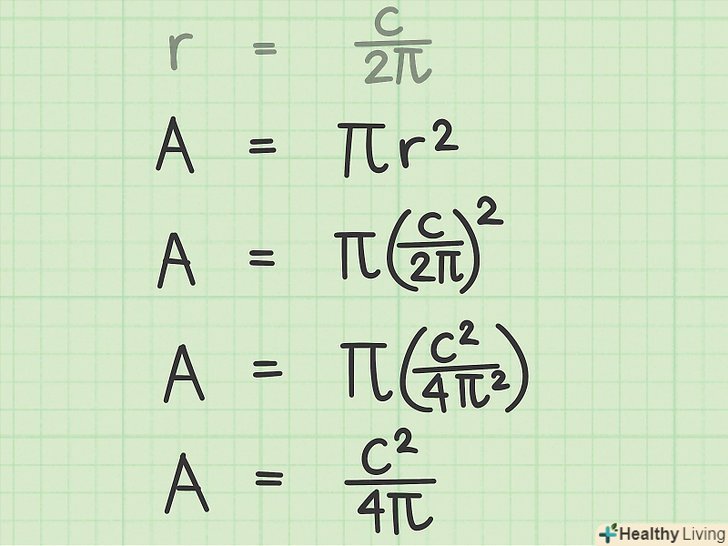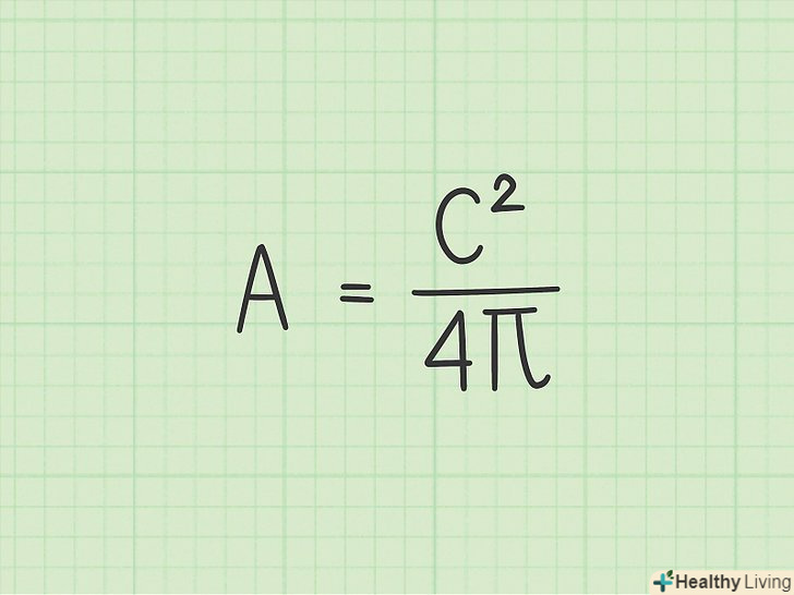 Запишіть перетворену формулу.якщо відома довжина кола кола, можна скористатися перетвореної формулою для обчислення його площі. Така формула включає довжину кола, а не радіус, і записується так: