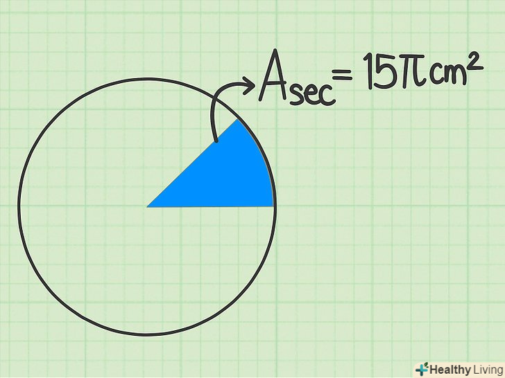 Запишіть відомі величини.у деяких завданнях дана площа сектора кола, по якій потрібно знайти площу всього кола. Уважно прочитайте таке завдання; її умова може виглядати так: "Площа сектора кола дорівнює 15см2. Знайдіть площу всього кола".[10]