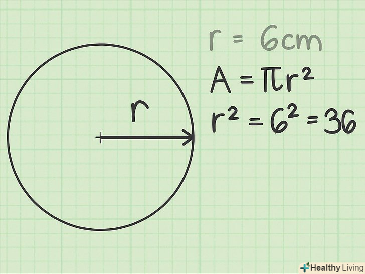 Зведіть радіус в квадрат. Формула для обчислення площі кола:, де