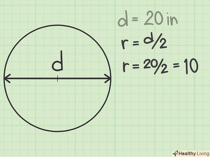 Виміряйте або запишіть діаметр.у деяких завданнях радіус не дано. Замість радіуса вказується діаметр. Якщо діаметр намальований на папері, виміряйте його за допомогою лінійки. Швидше за все, Числове значення діаметра буде задано.- Наприклад, діаметр кола дорівнює 20 мм.