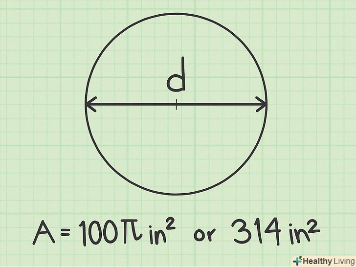 Запишіть відповідь.Пам'ятайте, що площа вимірюється в квадратних одиницях. У нашому прикладі діаметр дано в міліметрах, тому радіус теж вимірюється в міліметрах, а Площа в квадратних міліметрах. У нашому прикладі S =мм2.