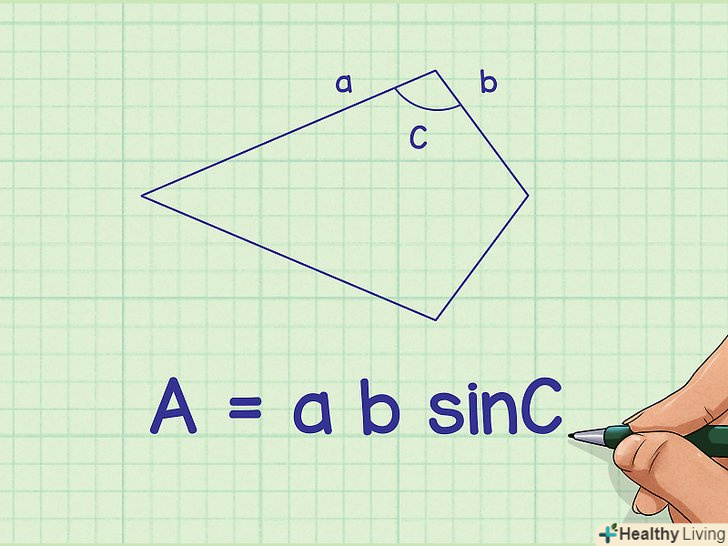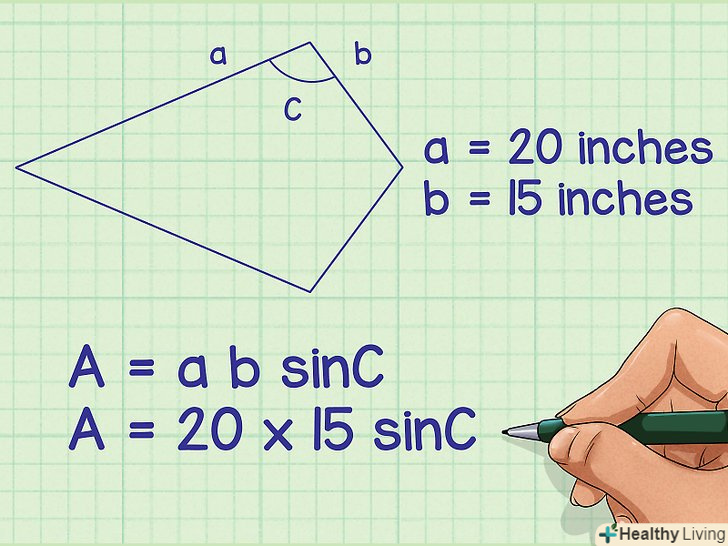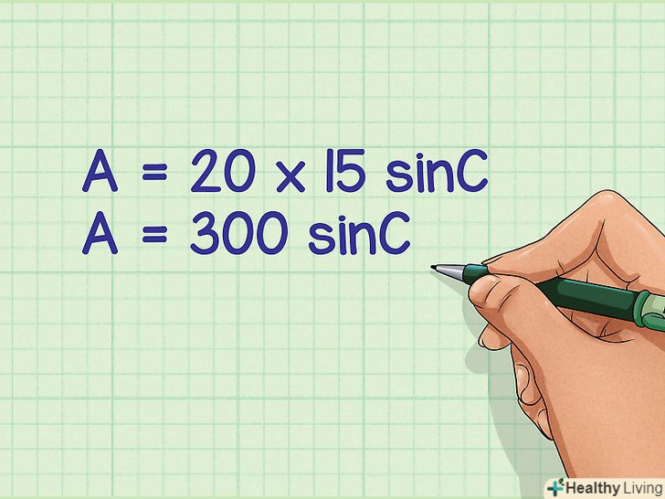 Перемножте результат добутку сторін і синус кута.так ви знайдете площу змія в квадратних одиницях виміру.- Наприклад: