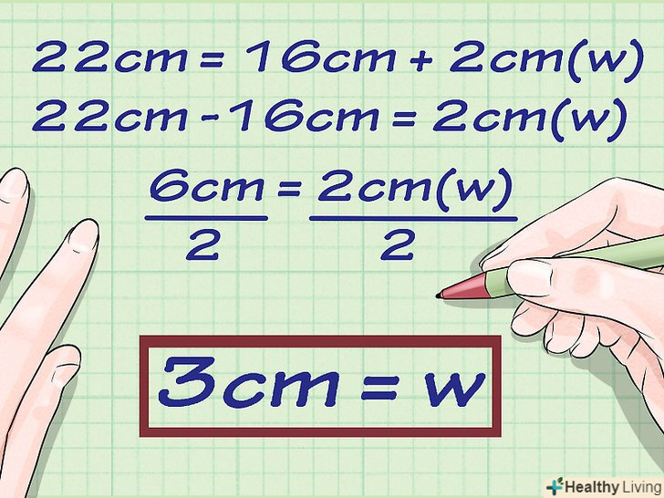 Знайдіть.для цього з обох сторін рівняння відніміть довжину, а потім обидві сторони розділіть на 2.