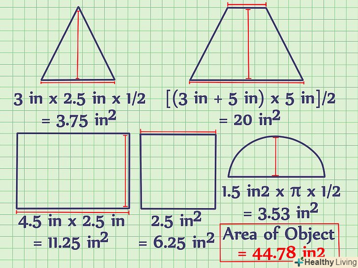 - Площа об'єкта = 6,25 см2 + 11,25 см2 + 20 см2 + 3,75 см2 + 3,53 см2