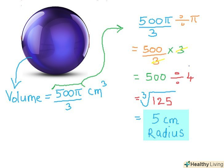 - Якщо дано обсяг, розділіть його на пі, отримане значення помножте на 3, а потім отримане значення розділіть на 4; з отриманого значення витягніть кубічний корінь.