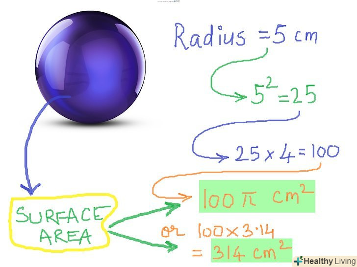 Отриманий результат помножте на пі (π).ви можете записати у відповіді знак» π", або підставити замість нього число 3,14 і знайти чисельне значення площі поверхні сфери.