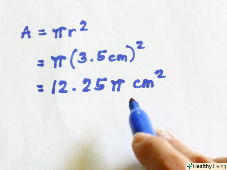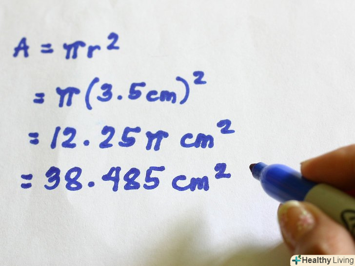 - Якщо в умовах задачі написано, що не потрібно знаходити точне Числове значення, ви можете не множити на Значення Пі, просто запишіть результат разом з Пі. Наприклад, якщо радіус дорівнює 3, то площа підстави дорівнює 9 Пі.