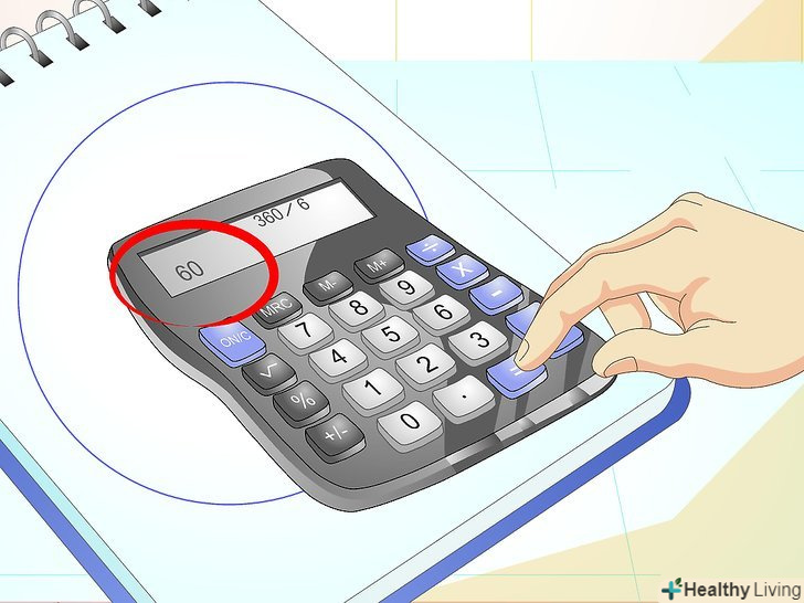Розрахуйте значення кутів між лініями, проведеними з центру кола в дві сусідніх вершини багатокутника. Повна окружність містить в собі кут 360 градусів, тому вам необхідно розділити 360 на число сторін багатокутника, рівне кількості його вершин. Таким чином ви отримаєте величину кута між радіусами кола, проведеними в будь-які дві сусідніх вершини багатокутника.- Наприклад, якщо ви будуєте шестикутник, цей кут буде дорівнює 60 градусам.