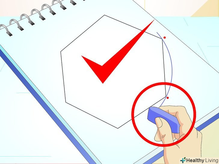 Зітріть допоміжні лінії і окружність. ви намалювали багатокутник! Якщо хочете переконатися, що ваш багатокутник дійсно правильний, поміряйте довжину його сторін і упевніться, що вона дійсно однакова.