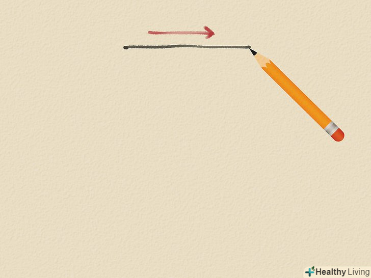 Намалюйте горизонтальну лінію. щоб намалювати пряму лінію без лінійки, просто намалюйте початкову і кінцеву точку горизонтальної лінії. Потім помістіть олівець в початкову точку і простягайте лінію до кінця. Довжина цієї лінії може становити лише кілька сантиметрів.