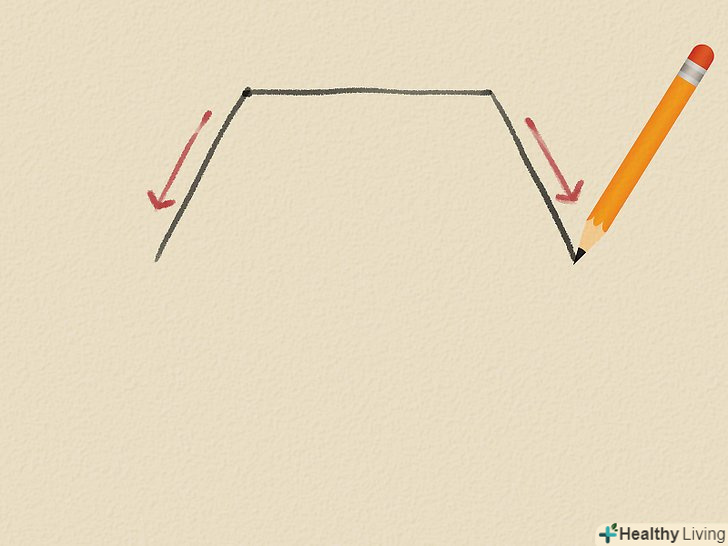 Намалюйте дві діагональні лінії з кінців горизонтальної.діагональна лінія з лівого боку повинна бути спрямована назовні так само, як і діагональна лінія праворуч. Уявіть, що ці лінії формують кут в 120 градусів по відношенню до горизонтальної лінії.