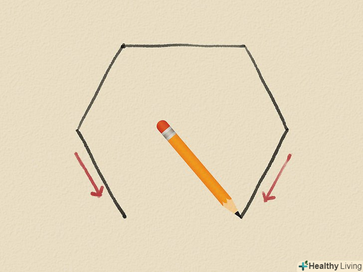Намалюйте ще одну горизонтальну лінію, з'єднавши нижні дві діагональні лінії.таким чином ви намалюєте основу шестикутника. В ідеалі ця лінія повинна бути паралельна верхній горизонтальній лінії. Ось ви і завершили свій шестикутник.