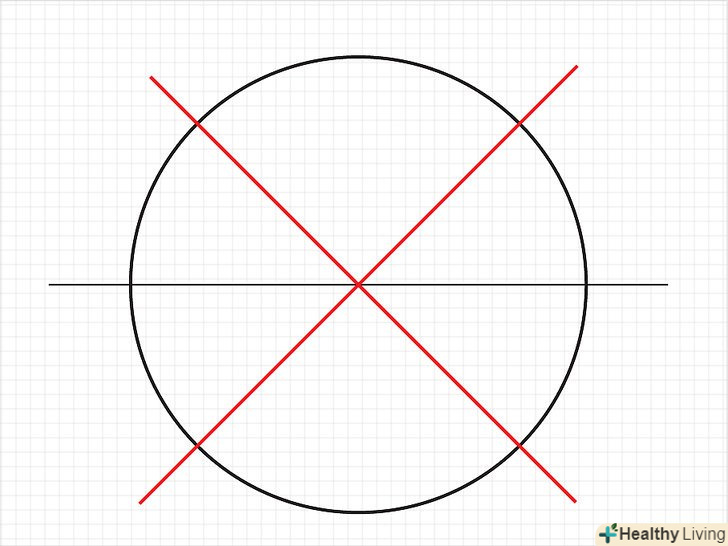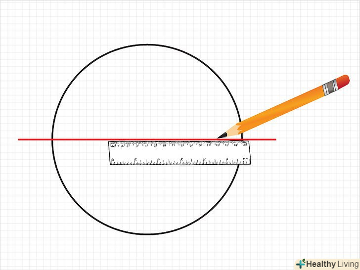 Накресліть горизонтальні лінії через центр кола.можете скористатися лінійкою, книгою-чим завгодно з прямим краєм. Якщо у вас все ж є лінійка, ви можете відзначити середину, розрахувавши вертикальну довжину кола і розділивши її навпіл.