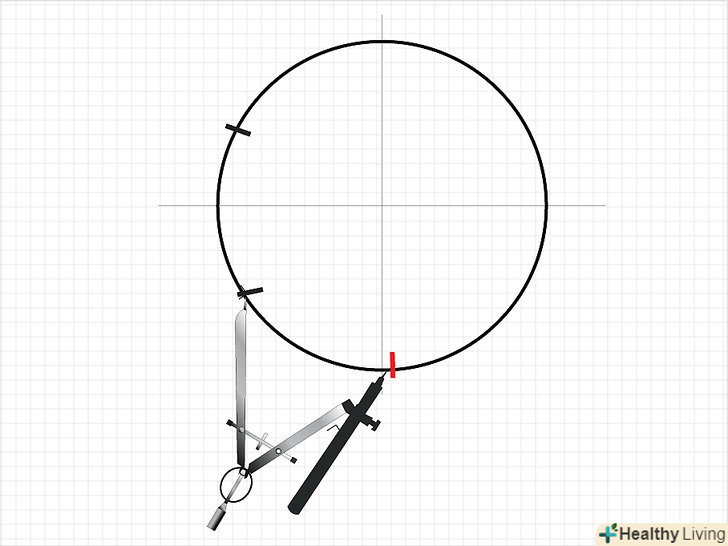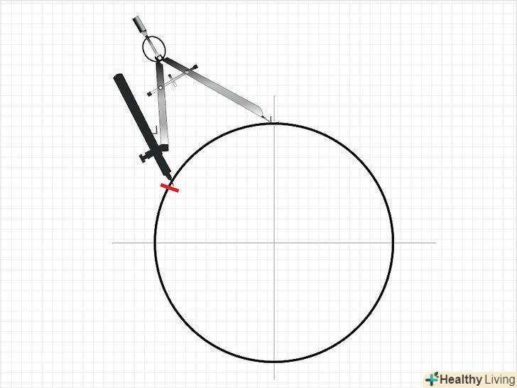 Зробіть невелику позначку олівцем на окружності.зробіть її виразною, але не надто темною, так як пізніше ви її зітрете. Не забудьте зберігати кут, який ви встановили для циркуля.