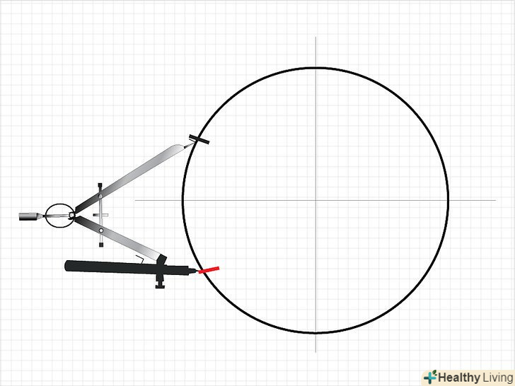 За допомогою циркуля намалюйте коло.вставте грифель олівця в циркуль. Розширте циркуль на бажану ширину радіуса потрібного кола. Радіус може бути від пари до десятка сантиметрів шириною. Далі поставте циркуль з грифелем на папір і намалюйте коло.- Іноді легше спочатку намалювати півкола в одному напрямку, а потім другу половину — в іншому.