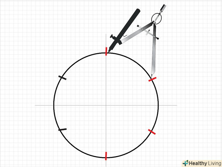 Тим же способом зробіть ще чотири позначки. ви повинні повернутися назад на початкову позначку. Якщо ні, то, швидше за все, кут, під яким ви тримали циркуль і робили позначки, змінився. Можливо, це сталося через те, що ви стиснули його занадто сильно або навпаки, трохи послабили.