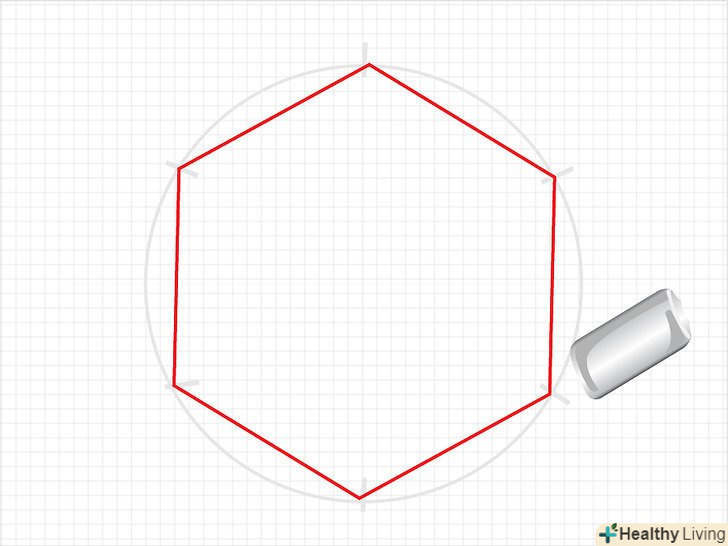Зітріть всі допоміжні лінії.зітріть і коло, і позначки на краях кола, і інші мітки, які ви зробили. Вітаємо - ви намалювали правильний шестикутник.