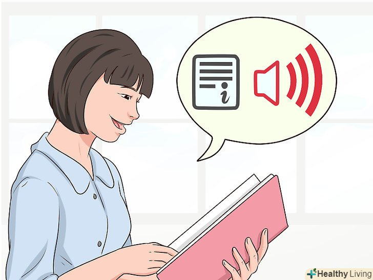 Промовляйте інформацію вголос, коли робите або читаєте записи.якщо бачити, говорити, чути і торкатися предмета, то мозок встановить більш міцні зв'язки і краще запам'ятає дані. Читайте підручник вголос і промовляйте текст, коли будете робити картки зі словами.[2]- Також можна записувати свій голос під час роботи. Прослуховуйте записи і стежте за текстом за підручником або картками.