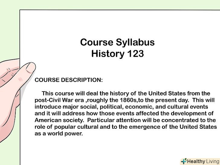 Прочитайте навчальну програму і знайдіть пересічні теми.навчальна програма-це той документ, в якому міститься список тем кожного уроку і список літератури до прочитання. Якщо Переглянути всі назви, Плани уроків та іншу зазначену інформацію, то простіше зрозуміти, як в даному курсі перетинаються різні теми.- Запитайте себе: "яким чином в програмі впорядковані всі факти і особистості? Пункти планів містять підказки або дозволяють знайти відповіді на важливі питання? Як пов'язані окремі теми уроків?»