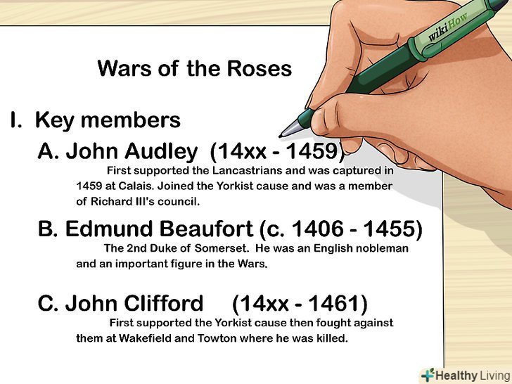 - Наприклад, щоб систематизувати лекції з Першої світової війни, складіть список країн, які брали в ній участь (включаючи правителів). Нижче вкажіть причини конфліктів. Нарешті, перерахуйте важливі битви і дати, тимчасові перемир'я і остаточні підсумки.