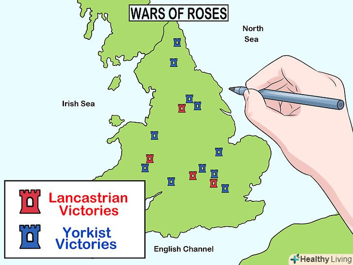 Створіть схему або карту зв'язків між фактами.при підготовці до іспиту з історії саме схеми, карти і таблиці стануть найкращим способом наочно зобразити матеріал. Крім зручності, візуальні підказки на зразок тимчасових графіків, генеалогічного древа і схем дозволять побачити глобальну картину.[4]- Наприклад, генеалогічне древо і тимчасові графіки допоможуть вивчити всіх російських царів і роки їх правління.