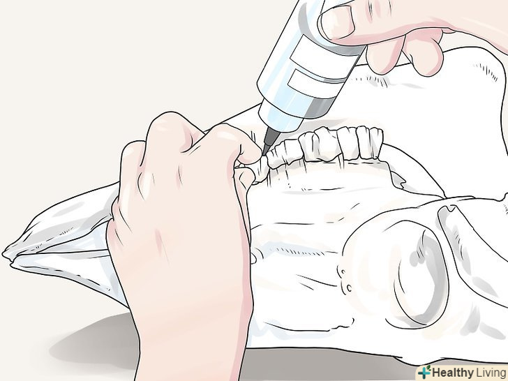 Помістіть зуби назад в їх гнізда.- Якщо ви застосовуєте для очищення черепа тварини один з методів з використанням води, зуби випадуть зі своїх осередків. Зберіть зуби і вставте їх назад, закріпивши за допомогою невеликої кількості клею.