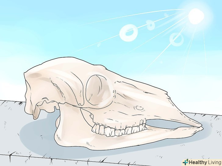 - Опустіть череп в воду з розчиненим в ній невеликою кількістю перекису водню. Не користуйтеся хлорним відбілювачем, оскільки він може пошкодити тканину кісток і зубів.