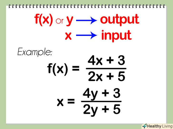 - " f (x)" або" y "являє собоюфункцію, А " х " - змінну. Щоб знайти зворотну функцію, потрібно поміняти місцями функцію і змінну.