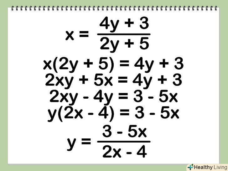 - У = (3 - 5x)/(2x - 4) — розділіть обидві частини рівняння на (2х-4), щоб отримати остаточну відповідь.