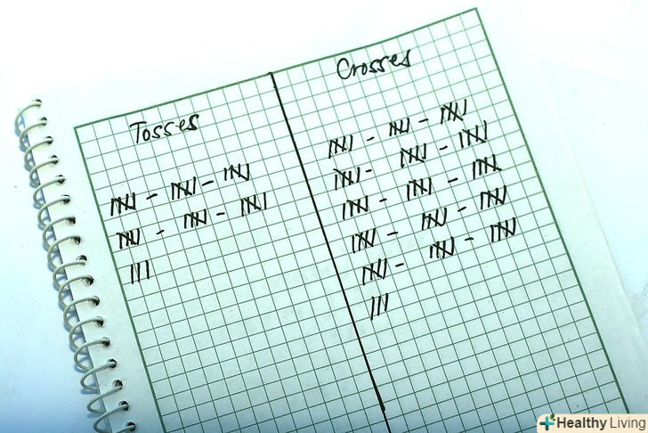 На листку паперу зробіть колонки» кидки «і»попадання".у першій колонці ви будете відзначати, скільки всього разів ви кидали хот-доги, у другій – як часто вони приземлялася, перетинаючись з смужками на підлозі (зверніть увагу, що вони повинні саме зупинитися там, а не зачепити смужку і відскочити).