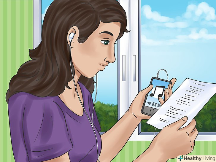 Слухайте пісню якомога частіше.мабуть, це найважливіше при запам'ятовуванні тексту. Зазвичай пісні простіше запам'ятати, ніж іншу інформацію.[12][13] саме тому для запам'ятовування часто рекомендують покласти інформацію на музику,[14] а багато людей запам'ятовують пісні без будь-яких зусиль при багаторазовому прослуховуванні. Слухайте потрібну пісню якомога частіше: в машині, в автобусі, в душі, під час прибирання, при виконанні домашнього завдання, коли збираєтеся лягати спати і взагалі в будь-якій зручній ситуації. В один момент пісня може вам набриднути, але текст цієї композиції вже засяде у вас в голові.- Цей метод буде особливо ефективним, якщо ви будете постійно підспівувати. Якщо ви збираєтеся співати на людях, вам потрібно практикуватисясаме в співі. У тому, щоб просто пам'ятати напам'ять слова, не буде особливого сенсу, якщо ви співаєте повз нот.