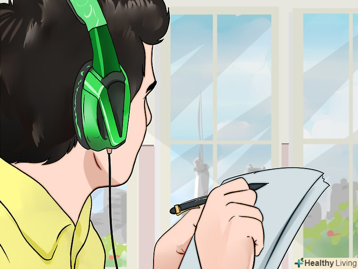 Засновуйте свій підхід на оптимальному способі запам'ятовування.тепер, коли ви вже краще знаєте свій мозок, пора визначати оптимальний спосіб запам'ятовування текстів пісень. Але пам'ятайте, що не потрібно обмежувати себе тільки одним варіантом; більшість людей запам'ятовує швидше при використанні всіх трьох способів одночасно.- Аудіали мають перевагу при запам'ятовуванні текстів пісень, оскільки пісні самі по собі сприймаються на слух. Якщо ви аудіал, то найкращим способом запам'ятовування стане багаторазове прослуховування пісні. Також допоможе спів або промовляння тексту пісні про себе. Спочатку ви будете підглядати текст, але з кожним повторенням будете запам'ятовувати все більше і більше.[9]