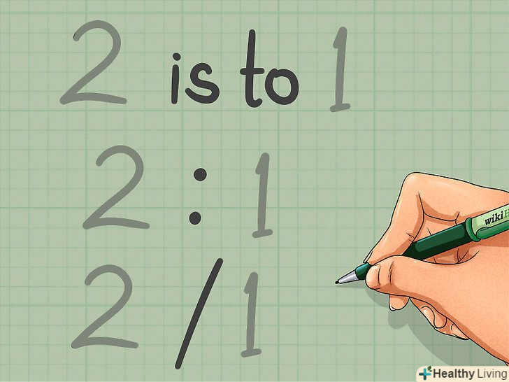 - Також співвідношення можна виразити через двокрапку. При порівнянні двох чисел в співвідношенні ви будете використовувати одну двокрапку (наприклад, 7:13); при порівнянні трьох і більше значень ставте двокрапка між кожною парою чисел (наприклад, 10:2:23). У нашому прикладі з класом ви можете висловити співвідношення дівчаток і хлопчиків так: 5 дівчаток: 10 хлопчиків. Або так: 5: 10.
