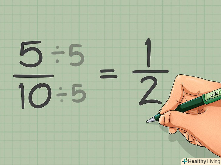 Спростіть співвідношення. співвідношення можна спростити (аналогічно дробів), розділивши кожен член (число) співвідношення на найбільший спільний дільник. Однак при цьому не пропустіть з уваги вихідних значень співвідношення.[3]- У нашому прикладі в класі 5 дівчаток і 10 хлопчиків; співвідношення дорівнює 5:10. Найбільший спільний дільник членів співвідношення дорівнює 5 (так як і 5, і 10 діляться на 5). Розділіть кожне число співвідношення на 5 і отримаєте співвідношення 1 дівчинка до 2 хлопчиків (або 1:2). Однак при спрощенні співвідношення пам'ятайте про вихідні значення. У нашому прикладі в класі не 3 учні, а 15. Спрощене співвідношення порівнює кількість хлопчиків і кількість дівчаток. Тобто на кожну дівчинку припадає 2 хлопчика, але в класі не 2 хлопчика і 1 дівчинка.