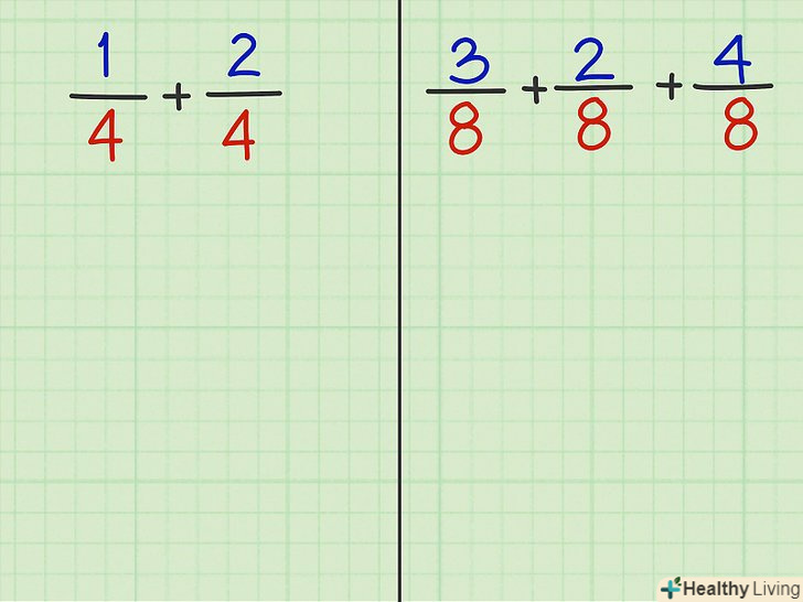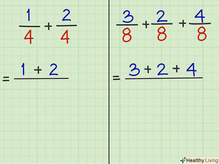 Подивіться на знаменники (числа під рисою) дробів. якщо вони однакові, вам дано дроби з однаковими (рівними) знаменниками; в іншому випадку перейдіть в наступний розділ.
