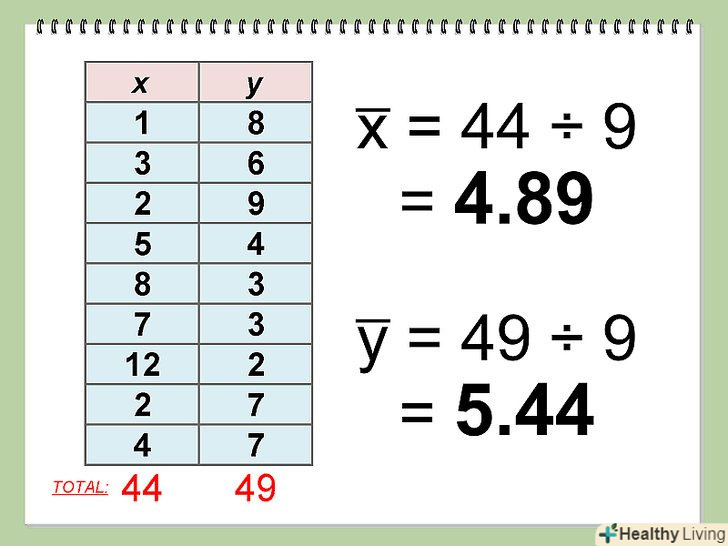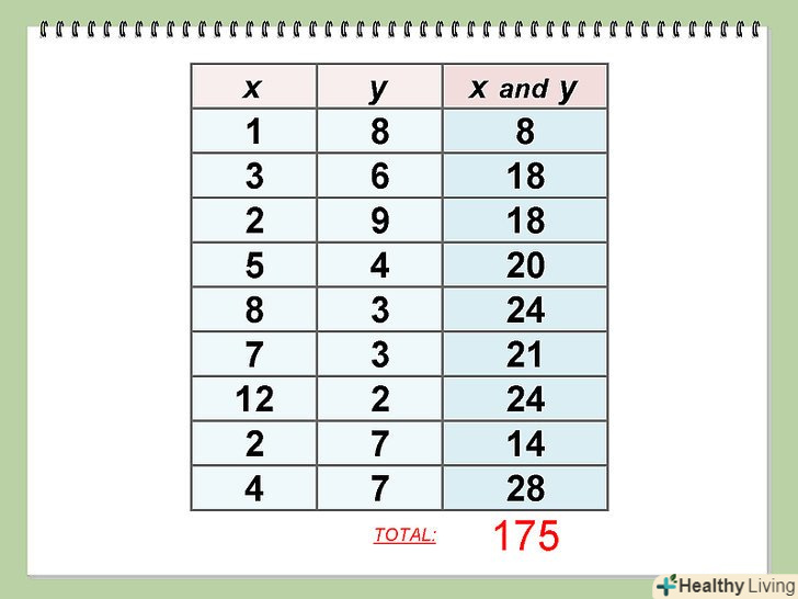Порахуйте суму "х»і "у".помножити кожен "х", при цьому співвідносити значення "у", а потім скласти ці значення.