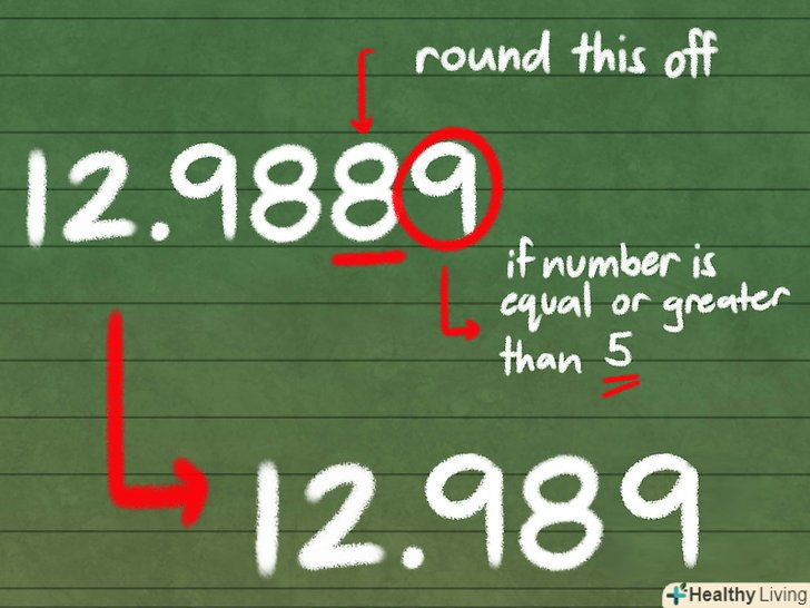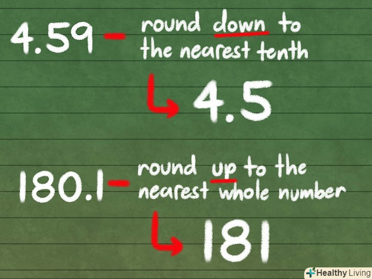 - Якщо у вас труднощі з визначенням місця округлення в більш довгих десяткових дробах, почитайте наочну довідкову літературу з даного питання.[3]