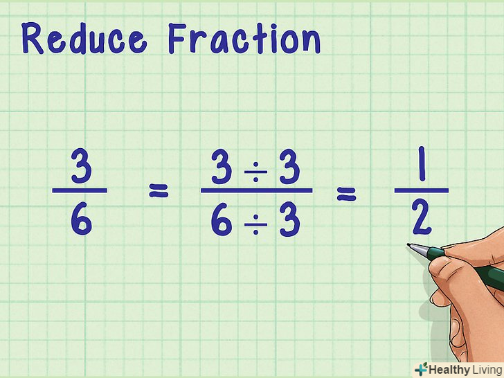 Якщо можливо, спростіть дріб.спрощена дріб-цей дріб, чисельник і знаменник якої не мають спільних дільників.[4]- Наприклад, розглянемо дріб 3/6. Тут і у чисельника, і у знаменника є загальний дільник, рівний 3, тобто чисельник і знаменник націлено діляться на 3. Тому дріб 3/6 можна записати так: (3 ÷ 3) / (6 ÷ 3) = ½ .