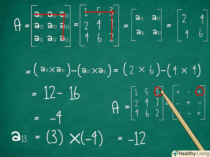 - Помножте результат на елемент a13: -4 * 3 = -12.