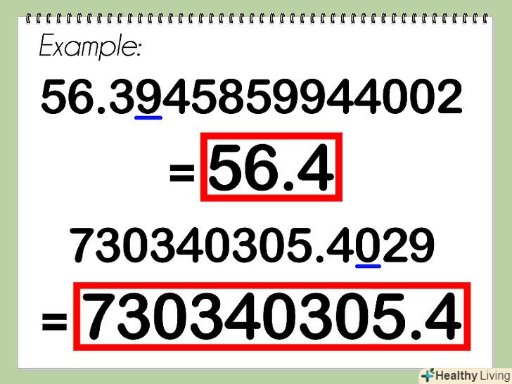 Тепер ваша десяткова дріб округлена до десятих!- Приклад: 56.39253865320568236582365286535 округлюється до 56.4