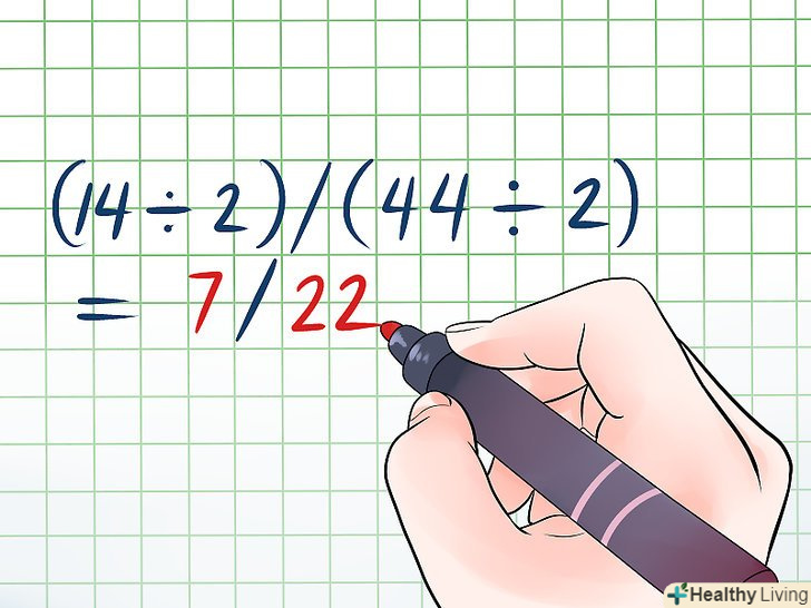 Спростіть дріб.спрощення дробу-це скорочення чисельника і знаменника до мінімально можливих чисел. Для цього розділіть чисельник і знаменник на одне число. Якщо дріб можна ще спростити, зробіть це. Наприклад, розглянемо дріб 14/44.- 14 і 44 діляться на 2: