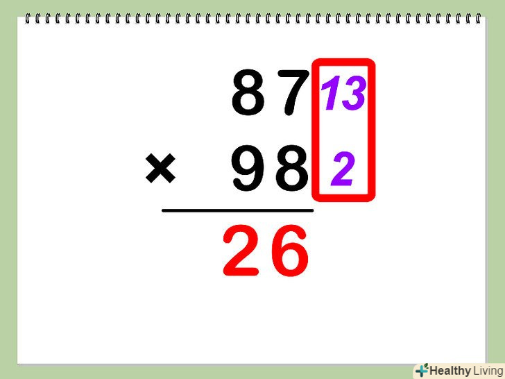 Помножте.' помножте числа, які ви тільки що записали і помістіть результат під основними числами (одиничний і десятковий розряди)