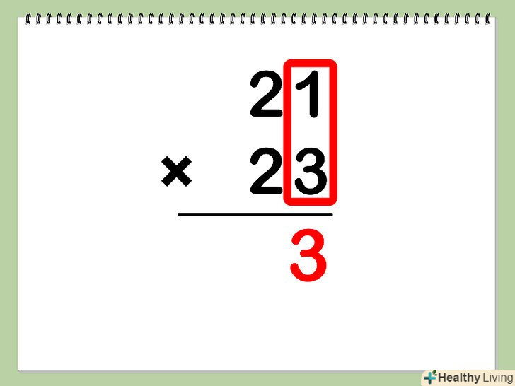 Множте.помножте числа одиничних розрядів і запишіть результат під ними.
