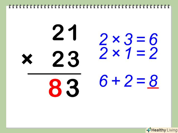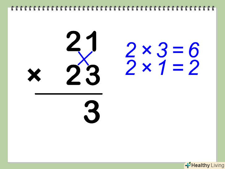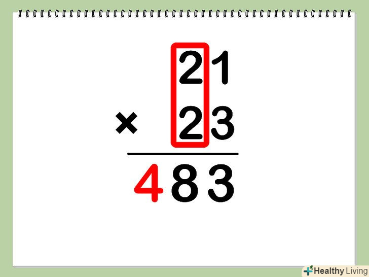 Помножте десяткові цифри. 2*1 = 2. Помістіть вийшло число під попереднім результатом, знову зсунувши вліво на один розряд, як показано на малюнку.