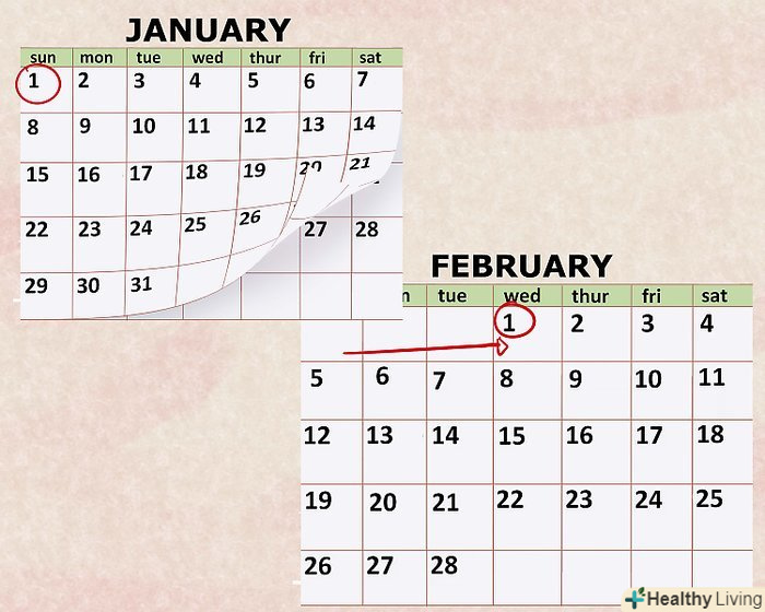 Щоб створити такий календар, перегляньте ще раз перші кроки даної статті.якщо ми починаємо з 1-го січня будь-якого року, перше лютого цього року буде зрушено в тижні щодо першого дня року на 3 дні. 1-е Березня, якщо рік не високосний, буде тим же днем тижня, що і 1-е лютого. Перше квітня буде зрушено щодо початку березня на 3 дні, і так далі. Таким чином, отримуємо перше правило для наших розрахунків.