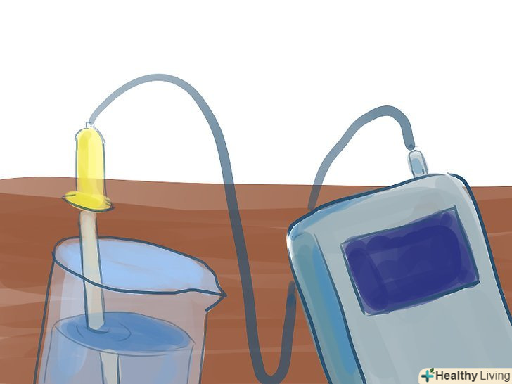 Вимірювання провідності рідини. ви повинні будете використовувати електричний кондуктометр: електронний пристрій, який використовується для вимірювання провідності. Воно працює шляхом звільнення струму в рідині і вимірює опір пропонованої рідини. Увімкніть його і поставте вимірювальний провід у вигляді трубки або терміналу в воду. Дочекайтеся результату на провідність (необхідна стабілізація показників).- Як приклад, скажімо, ви намагаєтеся обчислити загальну кількість розчинених твердих речовин у зразку води. Після занурення електричного лічильника провідності в ваш зразок, Ви отримуєте значення 430 micro-Siemens / см на 25 градусів за Цельсієм.