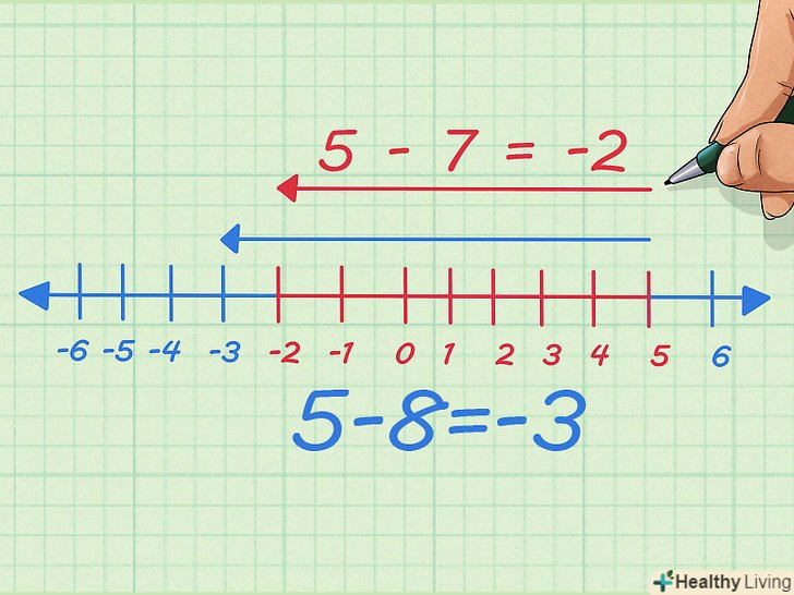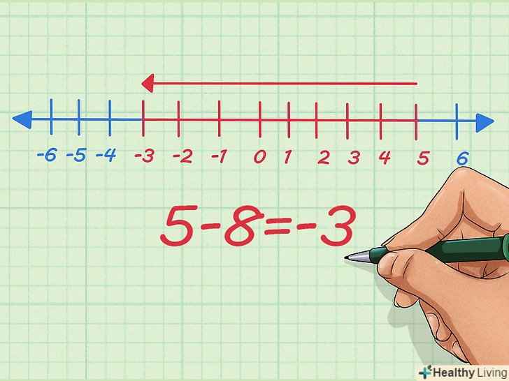 Зменшіть віднімається.наприклад, замість 8 відніміть 7 (7 менше 8 на 1). Тепер вліво ви просунетеся на одну мітку менше. Ви почали з5 - 8 = -3